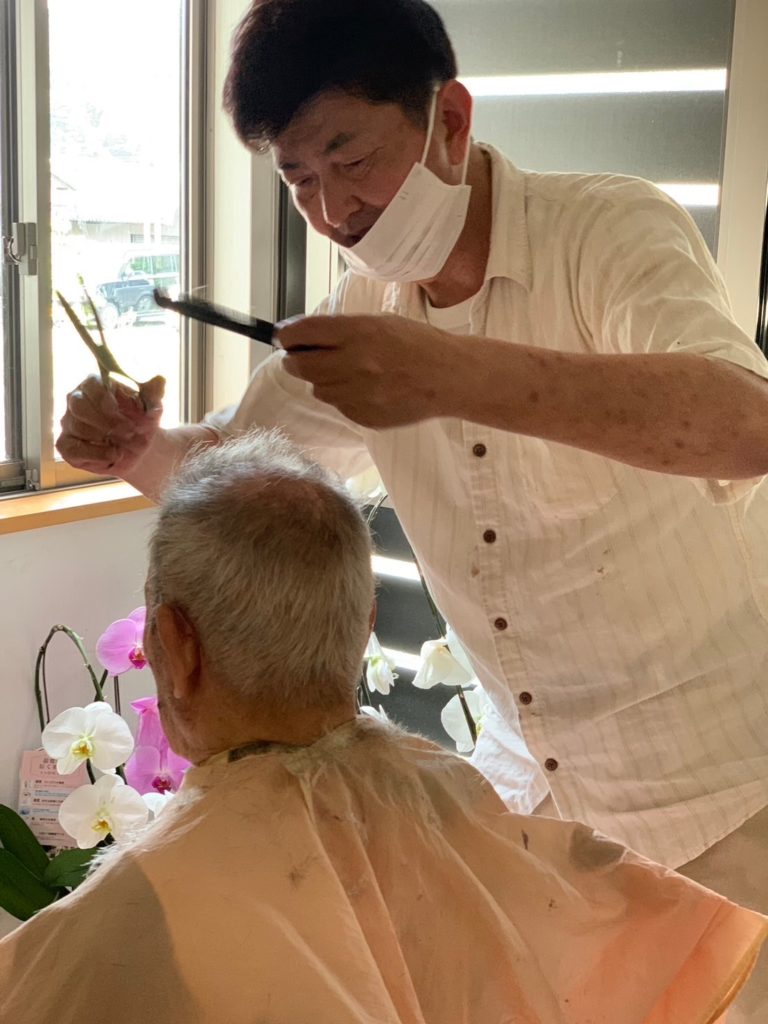 美容師であった伊藤さん。今は弊社の介護士として、おとなの学校メソッド講師として、散髪も担当いただいています。