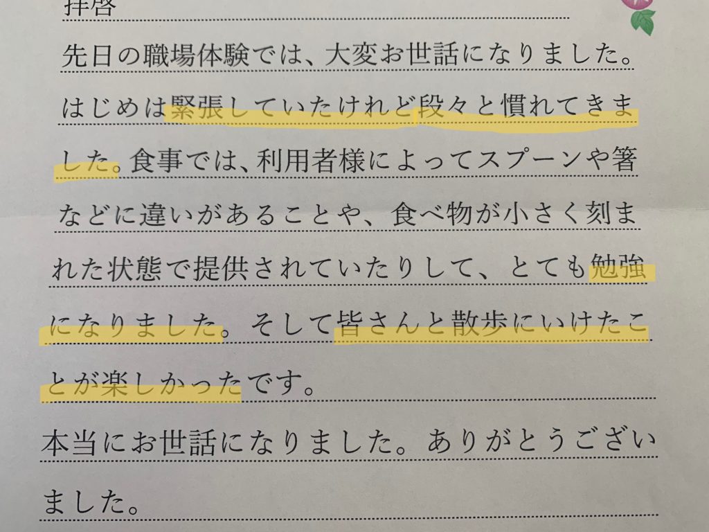 私たちの施設で職場体験いただき、本当にありがとうございました。