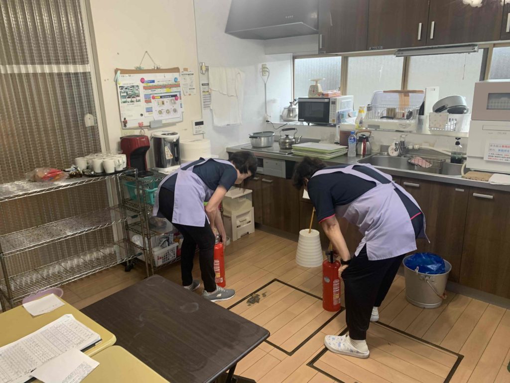 森のやすらぎ荘の厨房から、火災が発生したと想定し訓練しました。