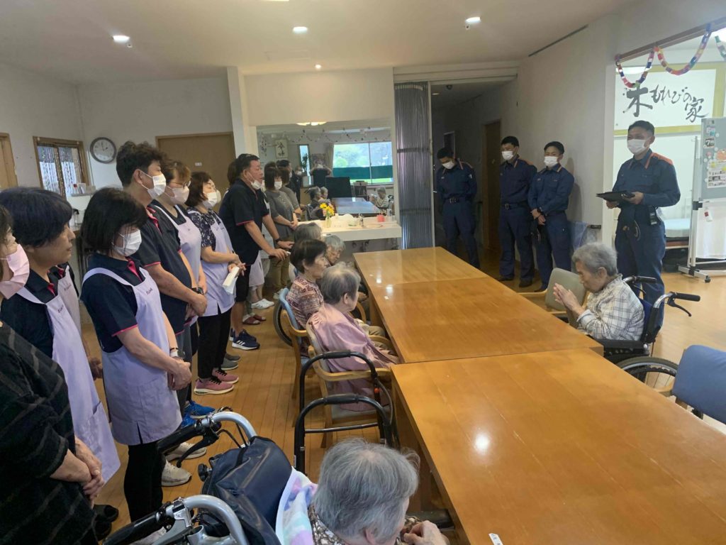 2施設の消防訓練終了後、消防隊員の方から本日の講評いただきました。