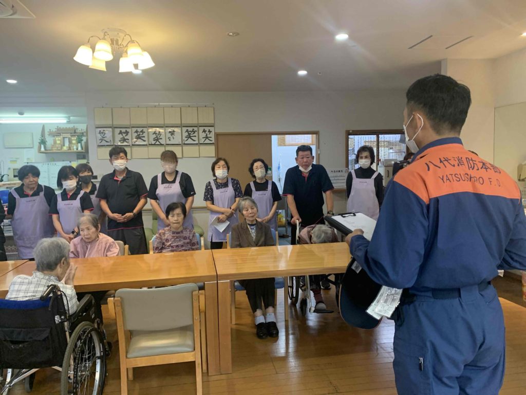10月22日、木もれびの家利用者様・森のやすらぎ荘入居者様の消防避難訓練を実施いたしました。