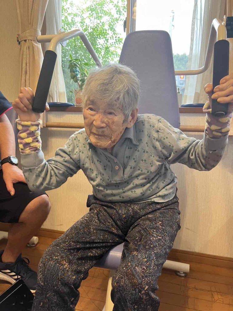 107歳、足上げと腕上げにチャレンジされていますよ!