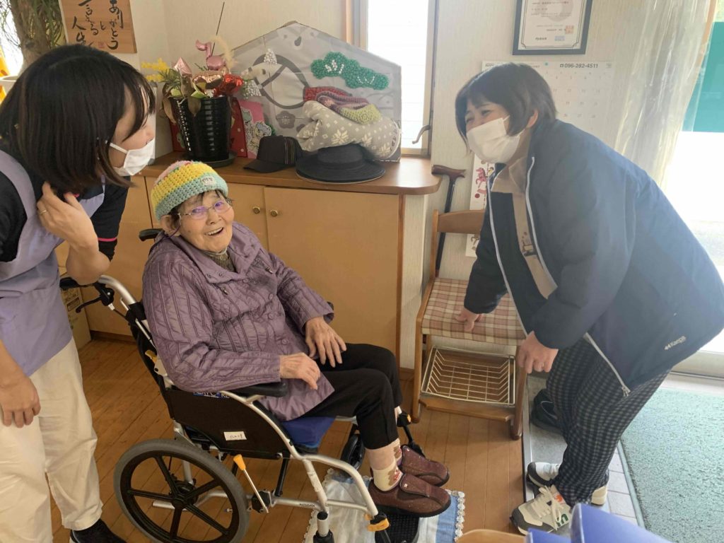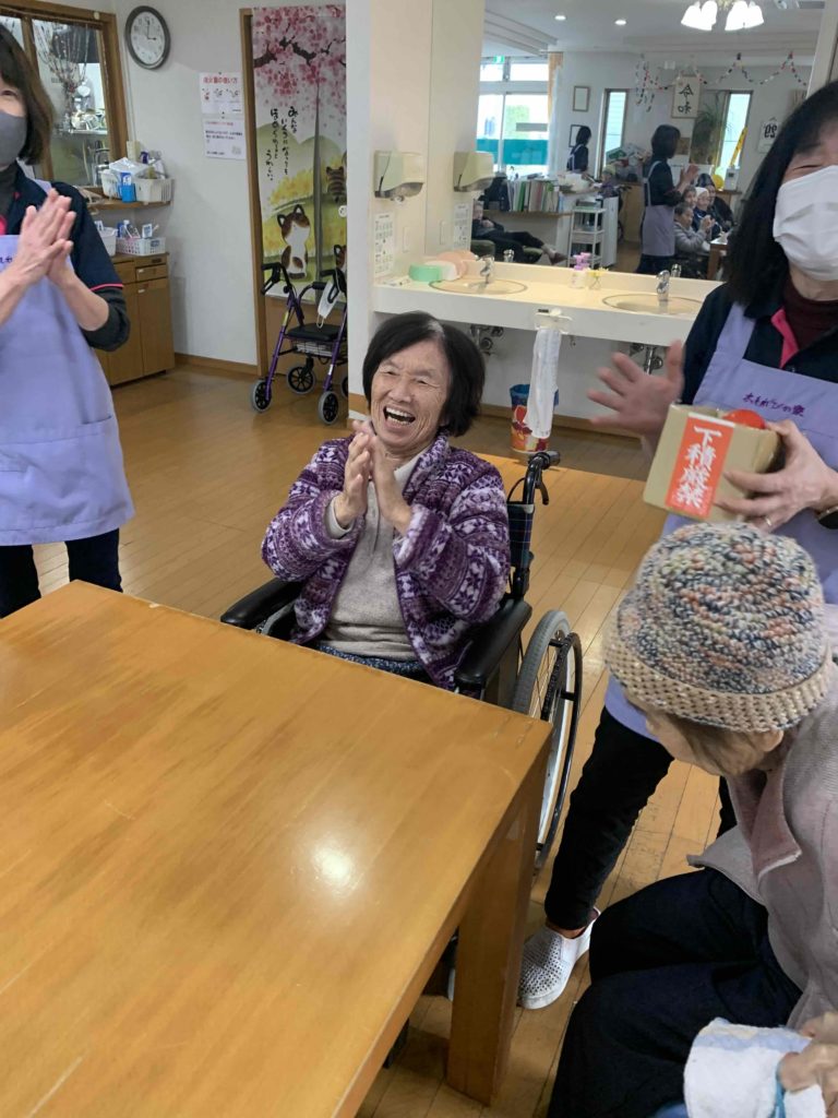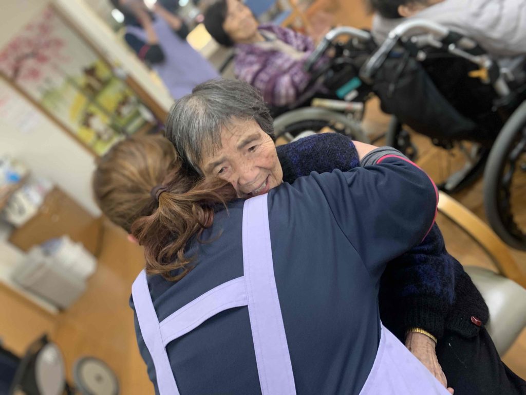喜びのあまり、職員が柿本様にハグしてしまいました。